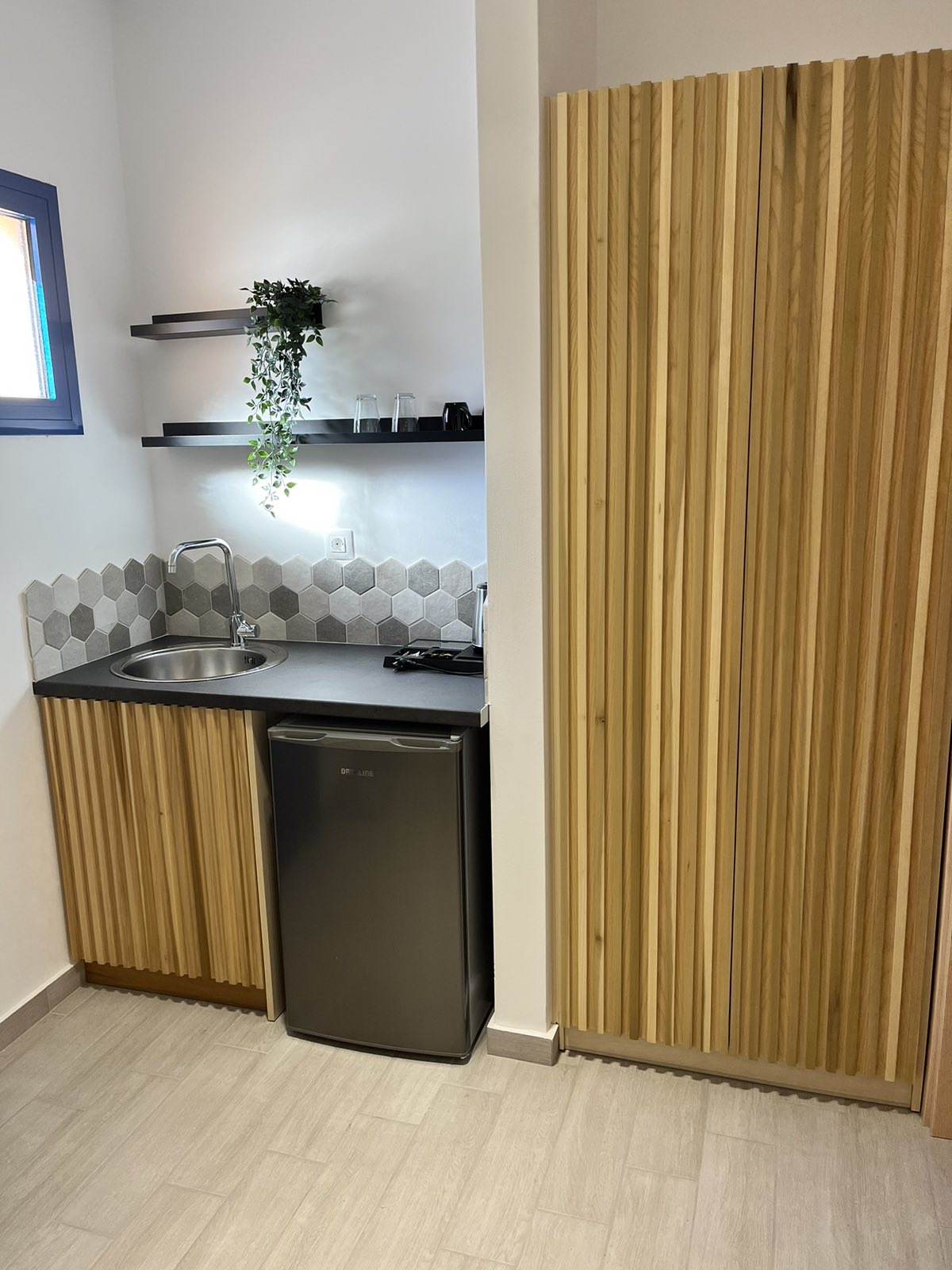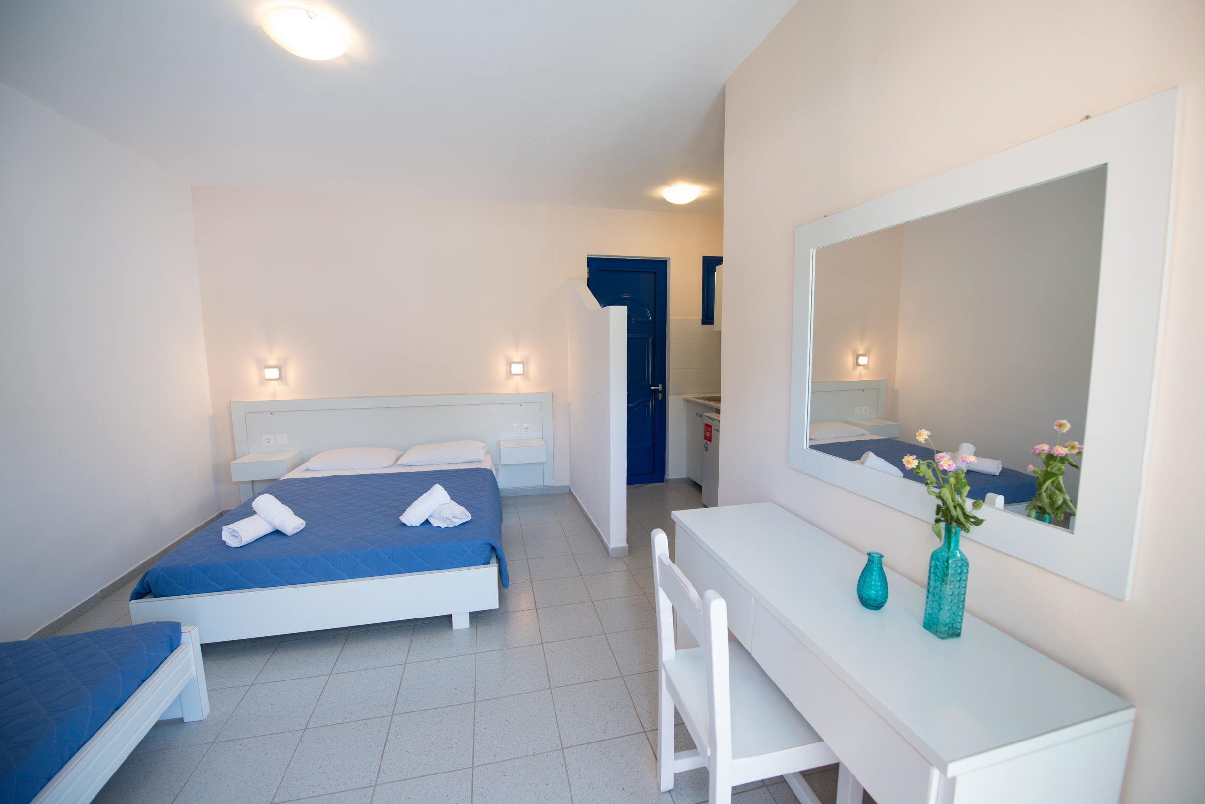 Dit appartementenhotel direct aan zee is verdeeld in 2 gebouwen. In het linkerdeel zijn de compleet gerenoveerde Superiorkamers, die een luxe verblijf garanderen. In het andere deel zijn de studio’s iets eenvoudiger ingericht, maar met de nieuwe matrassen op de bedden en een kitchenette, bieden ook deze kamers een prettig verblijf in Vassiliki.
