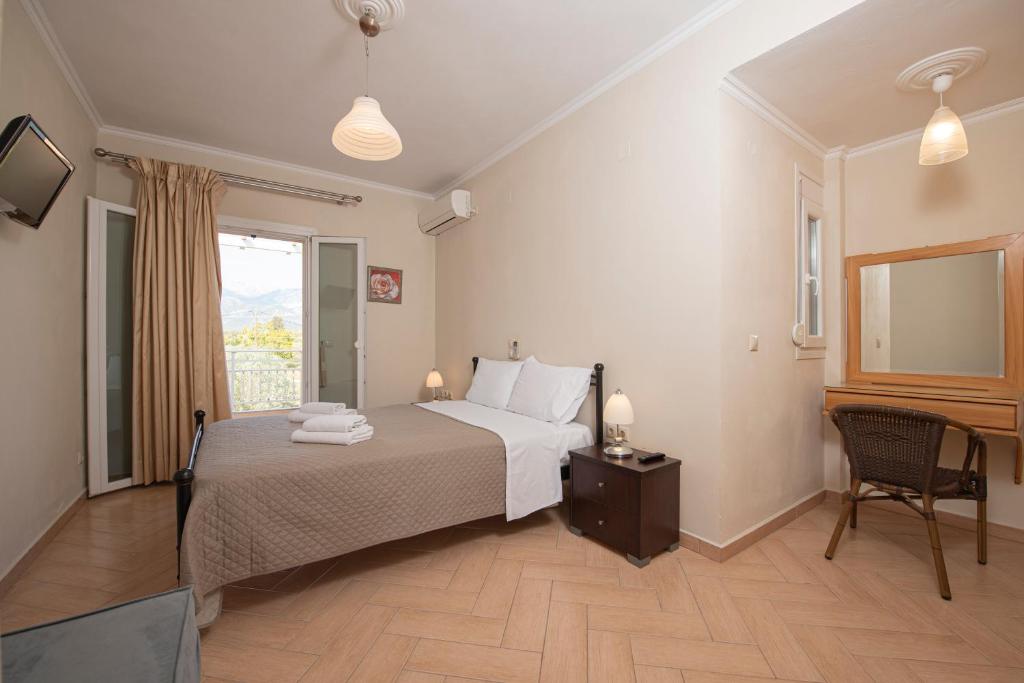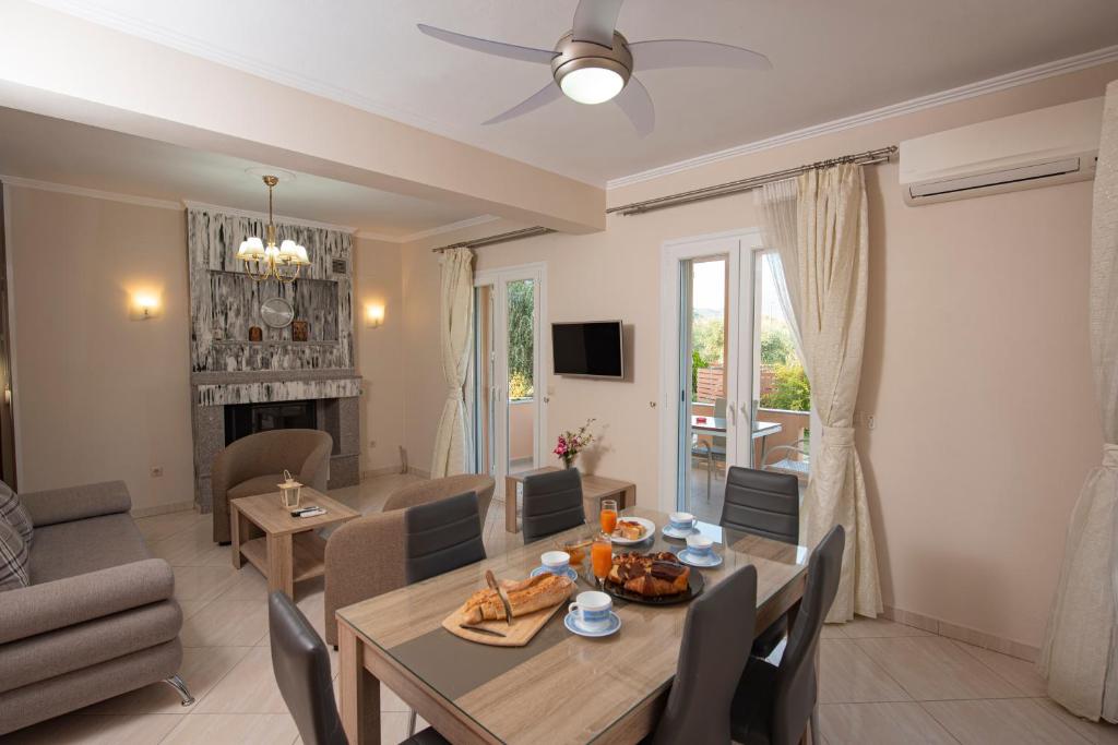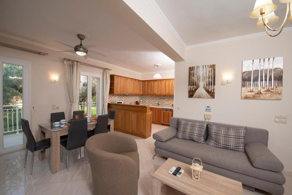 Deze 2 maisonnettes zijn gelegen op een groot en goed onderhouden terrein tussen de olijfbomen en op maar 1 kilometer vlakke weg van centrum en strand Vassiliki. Het havendorp met veel winkeltjes en horeca en een lang strand met watersport zoals surfen en zeilen.