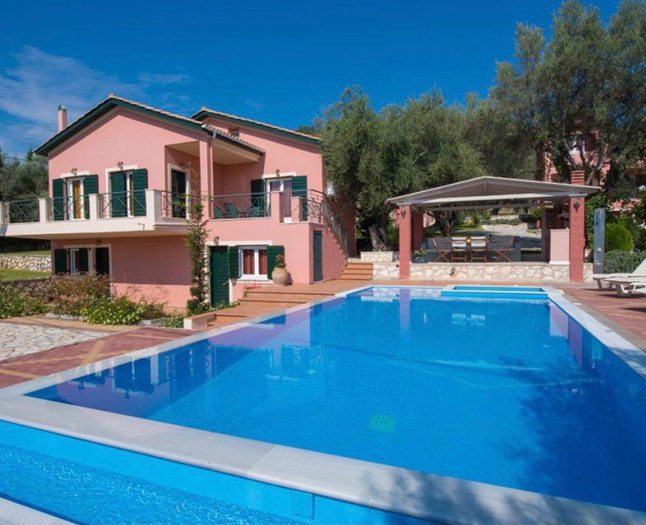 Op het kleinschalige villapark staan vier villa’s, twee voor max. 6 personen en twee voor max. 8 personen. Elke villa staat op een grote groene kavel met eigen zwembad/jacuzzi en buitenkeuken met bbq! Privacy is hier gegarandeerd en toch dicbtbij Lefkas stad om de drukte op te zoeken