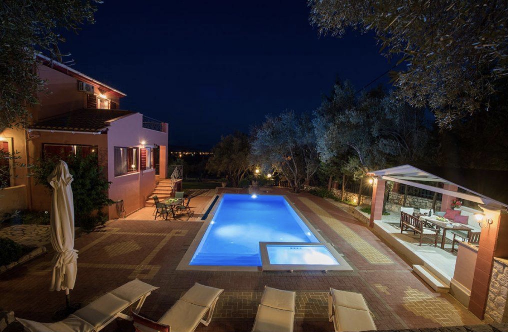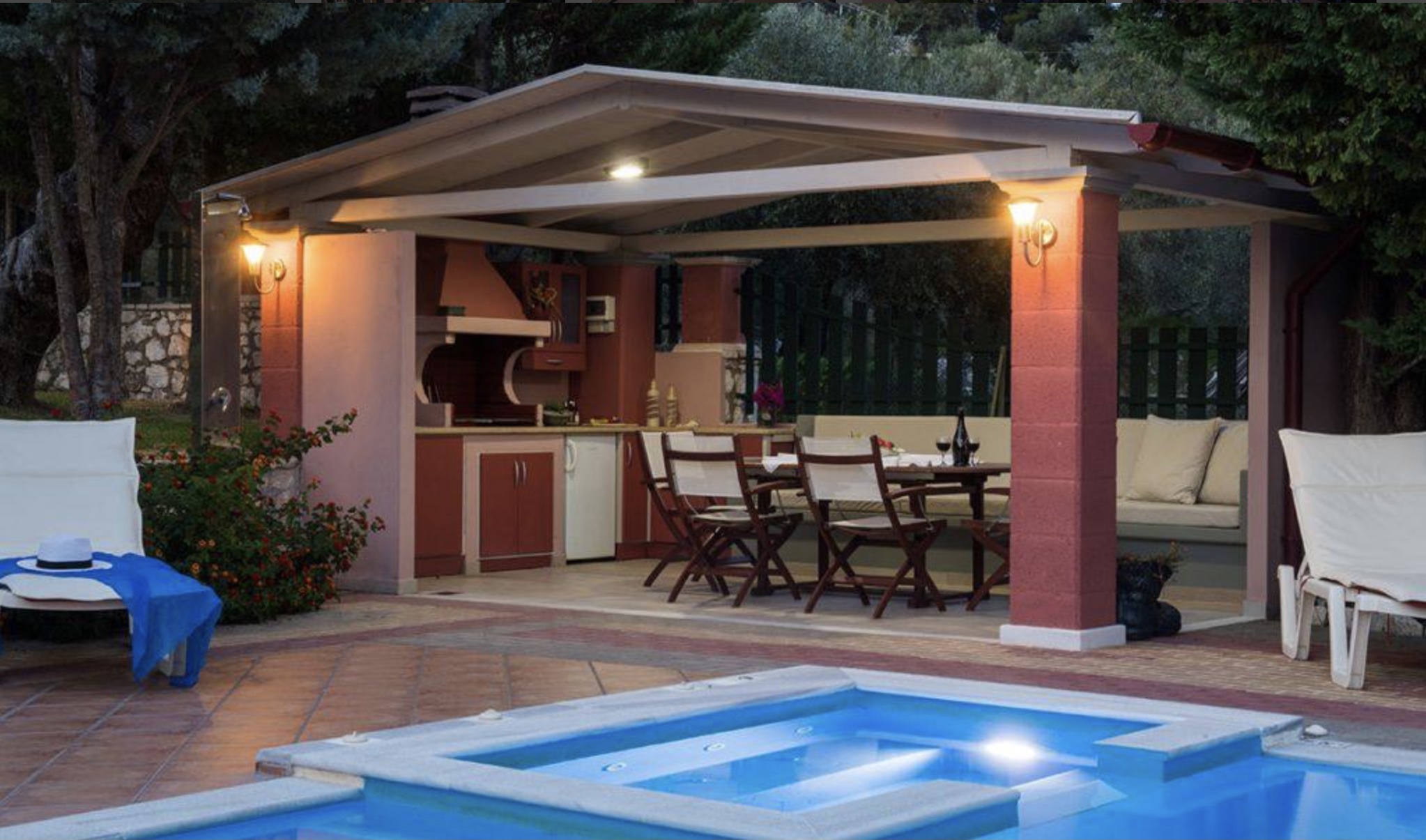 Bij de villa is een privé-zwembad met ingebouwde jacuzzi. Heerlijk afkoelen of voor de kinderen spelen in dit zwembad. Bij avond wordt het zwembad sfeervol verlicht en bepalen de gasten zelf de ‘sluitingstijd’ van het zwembad.