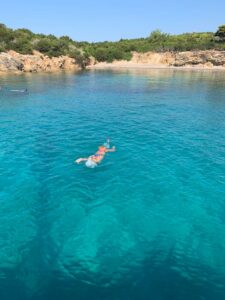 Een warm welkom in de ochtend door de crew met koffie/jus en croissantje, een eigen zonnebed op het zonnedek van de houten boot, enkele zwemstops in de prachtige baaien én in de middag een uitgebreid Griekse buffetlunch met drankjes aan boord van de MS Christina, dit allemaal maakt de dagcruise tot een highlight van uw vakantie op Lefkas!