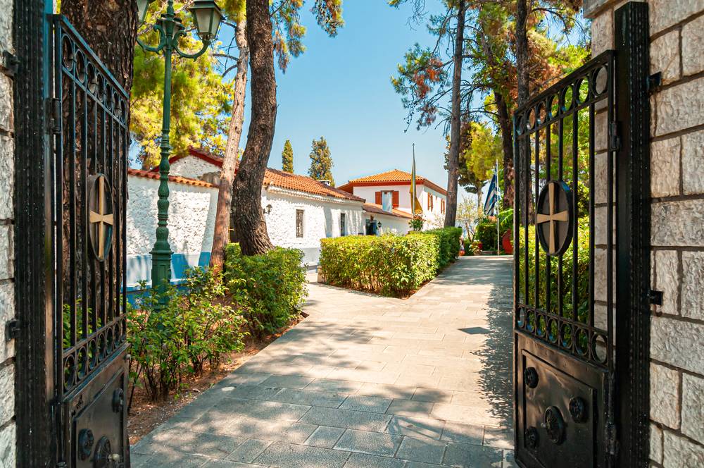 De eerste gebouwen van het klooster werden opgericht in de 4e eeuw. Gedurende de geschiedenis heeft het klooster te maken gehad met verschillende tegenslagen en meerdere malen wederopbouw ondergaan. De huidige architectonische vorm is te danken aan de Venetianen uit de 18e eeuw. Desondanks is het klooster twee keer verwoest door brand in de 19e eeuw. De bewoners hebben zich echter nooit laten verslaan en hebben het steeds weer opnieuw opgebouwd in de Venetiaanse stijl. Tegenwoordig wordt het klooster nog steeds bewoond door enkele monniken, die de zorg dragen voor de prachtige tuin met volière. Binnen het kloosterterrein bevindt zich tevens een museum, waar enkele bijzondere iconen en oude manuscripten bewonderd kunnen worden.